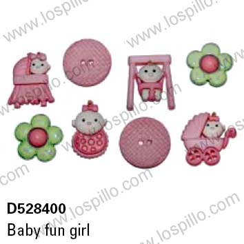 bottoni in fantasia, baby fun girl, banbina felice, assortimento sul rosa, simpaticissimi e colorati, forme e misure diverse, da usare come bottoni, accessori nei fiocchi o nelle bomboniere, nei sacchetti dei confetti, come applicazioni per abbellire e decorare i vostri lavori, prezzo di vendita di una confezione contenente i pezzi in foto