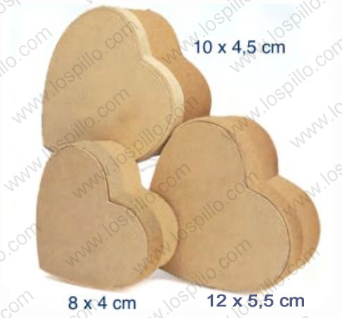 Scatole in cartone set composto di 3 pezzi a cuore misure in figura, prezzo e vendita a set