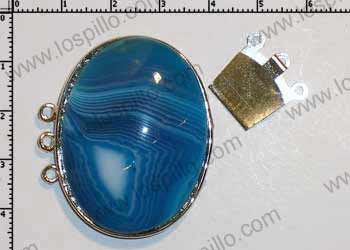 base col argento, decorato con pietra Agata ovale piatta, per collane a tre o piu’ fili, 40 x 30 mm co,37, prezzo e vendita a pezzo singolo