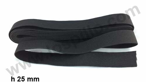 a metraggio alto 25 mm per 10 metri, allungatura 190 %. elastico, nastro o banda o fascia elastica. L’ elastico morbido nero è lavabile con lavaggio 95 gradi, stirabile temperatura media, può andare in asciugatrice, lavabile a secco con percloroetilene non trielina, è un nastro che se sottoposto a una tensione, tiraggio, alle sue estremità, si allunga, mantenendo però una tensione sulla sua lunghezza. ovvero tenderà a riportarsi alla lunghezza di partenza, con una certa forza. Se questa forza è notevole sarà un elastico medio, se è intensa sarà un elastico duro o rigido. Il Nastro elastico è composto da diversi fili di gomma, oppure di silicone, normalmente paralleli che formano l’ordito, sono il numero e lo spessore di questi fili che danno all’elastico la sua forza. Invece fili in poliestere, o in poliammide formano la trama. A volte per particolari esigenze, vi possono essere anche trame in cotone o altre tipologie di materiali. L’elastico in commercio si trova come nastro in diverse altezze, con diversa forza di ritorno, spessori, colori, finiture. L’elastico può essere piatto, tondo, rettangolare. Possiamo avere elastico opaco normale, opaco con un lato leggermente felpato per le spalline dei reggiseni, oppure con un lato rasato cioè lucido, oppure trovate elastico molto rigido per realizzare bustini particolari o per la tapezzeria, ovvero per poltrone divani e altri tipi di sedute questi tipi di elastico hanno un’allungatura limitata e tengono molto bene sulle cuciture. Con il tempo i lavaggi, lo stresso dovuto a sollecitazioni continue e sucessive, gli elastici tendono a perdere le loro caratteristiche elastiche e a slassare e quindi a non tornare alla lunghezza originale. Questa perdita di elasticità è dovuta alla purezza della gomma, quindi alla qualità dei materiali, allo spessore e al numero dei fili che compongono l’elastico, questo significa che a parità di qualità gli elastici della serie morbida tenderanno a perdere negli anni la loro elasticità di più di quelli medi e di quelli rigidi. Per avere un’idea della forza dell’elastico abbiamo inserito un parametro detto ALLUNGATURA, ovvero di quanto si allunga in percentuale un metro di elastico, se sottoposto alla forza (peso) di 1 kg, esempio con ALLUNGATURA del 200 % un elastico lungo 1 mt diventerà 2 mt. L’allungatura non è una costante e dipende da vari fattori oltre che dalla tensione applicata all’elastico. La composizione dell’ elastico morbido nero Composizione a norma di legge n 883 del 26nov1973, poliestere 84 %,fibra di gomma 16 %. Prezzo e vendita a metro.