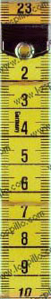 metri per sarti a nastro, scala in cm, misure 0,8 mm x 19 mm x 150 cm, colore 1 lato giallo bianco, e terminale in plastica trasparente flessibile dei primi 10 cm millimetrati, prezzo e vendita al pezzo