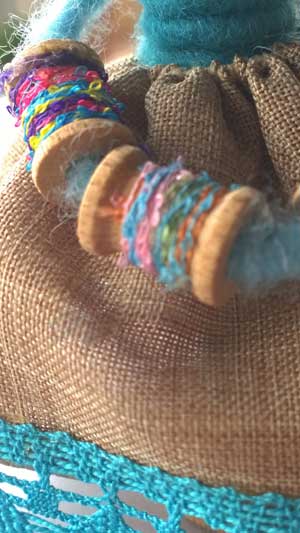 Per le braccia, Con del filo colorato o con dei filati fantasia che avete in casa, abbellite i rocchetti in legno